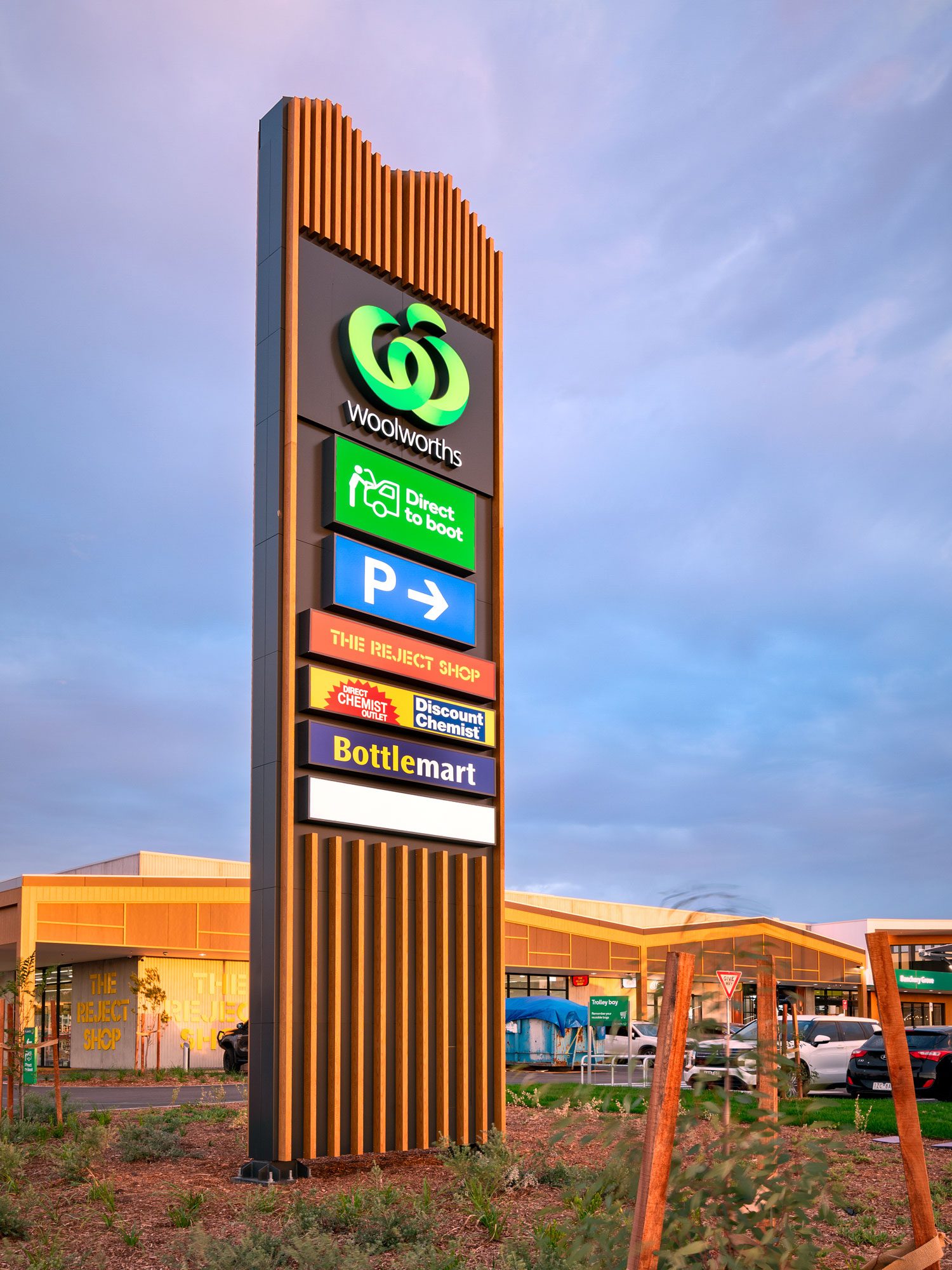 This project includes the construction and fit-out of a new Woolworths supermarket along with the cold shell construction of 21 further tenancies. High quality public amenities were completed by our team, including modern finishes and family friendly facilities. Aluminium timber cladding and battens are the feature element of the external façade.